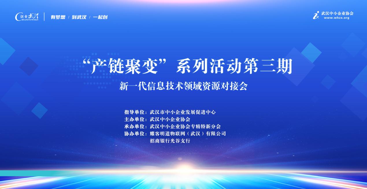 产业赋能、链启创新、聚链为核、变见未来。9月25日下午,由武汉市中小企业发展促进中心指导、武汉中小企业协会主办、武汉中小企业协会专精特新分会承办的“产链聚变”系列活动第三期新一代信息技术领域资源对接会在耀客明道物联网(武汉)有限公司成功举办,本次活动由耀客明道物联网(武汉)有限公司、招商银行光谷支行协办。