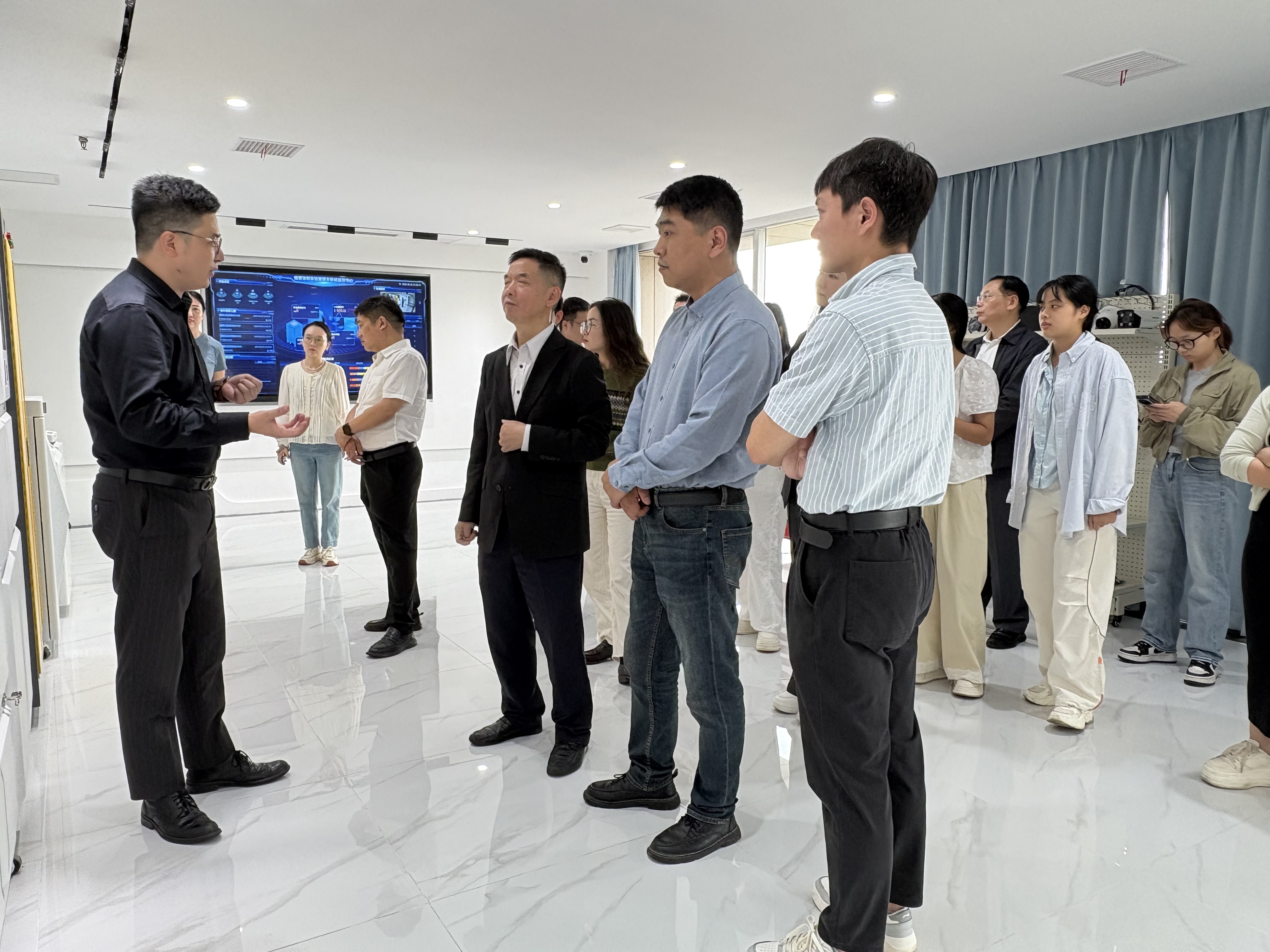 耀客明道总经理王祥陪同与会人员现场参观耀客明道物联网(武汉)有限公司