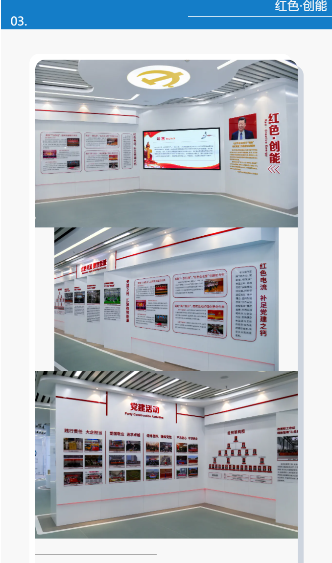 该篇章荟萃了长江电气党委积极探索非公党建发展路径,展示了公司多年的党建工作成果。长江电气始终坚持“明方向、聚能量、谋发展”党建方针,坚持贯彻“围绕发展抓党建,抓好党建促发展”党建理念,坚持叫响用好“红色电流 数智能量”党建品牌,将国家战略转化为企业自觉,加快满足新能源为主体的新型电力系统建设需求,持续实现党建引领企业高质量发展。该展厅也是作为光谷数字经济党建十景,实行预约制面向社会开放。