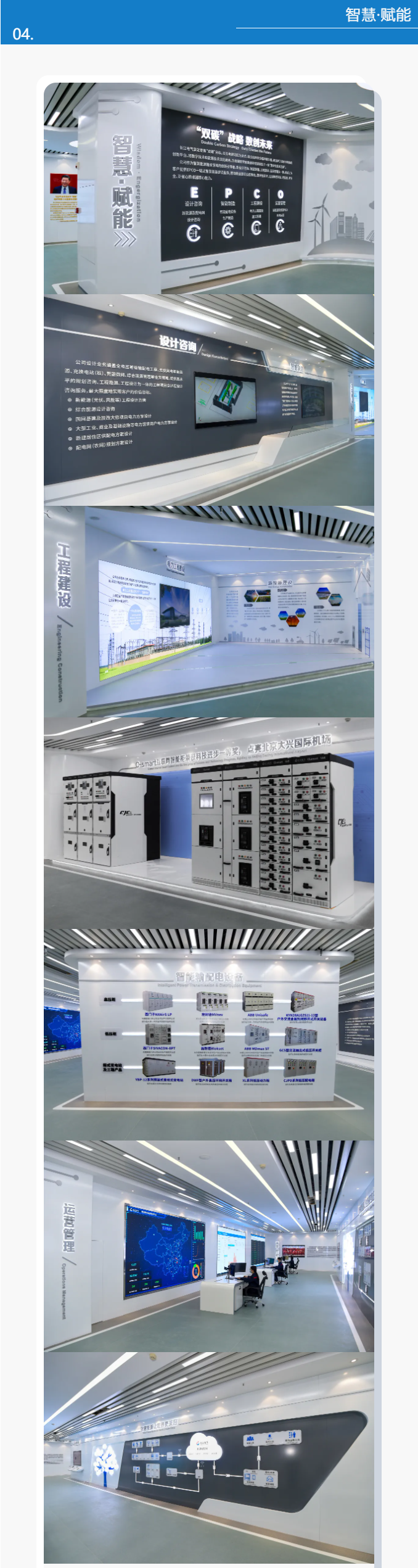 打造沉浸式体验,提供定制化服务,长江电气数字化展厅以“智慧能源建设引领者”为主题,由“发展·动能”、“合创·聚能”、“红色·创能”、“智慧·赋能”、“未来·释能”五个篇章组成,全方位、多角度、立体化展现了长江电气十六年来砥砺前行发展道路,展示企业由传统制造向智能制造转型发展成果,也描绘了企业未来发展的美好蓝图。