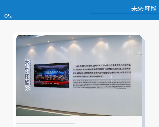 能量没有穷尽,奋斗永不止息。当企业展厅翻开新的篇章,长江电气也踏上新的征程,我们矢志创建国际一流企业,成就百年长江电气,依靠科技驱动,赋能“双碳”伟大目标,引领新能源发展格局,争做智慧能源建设引领者,点亮世界更加美好的未来。